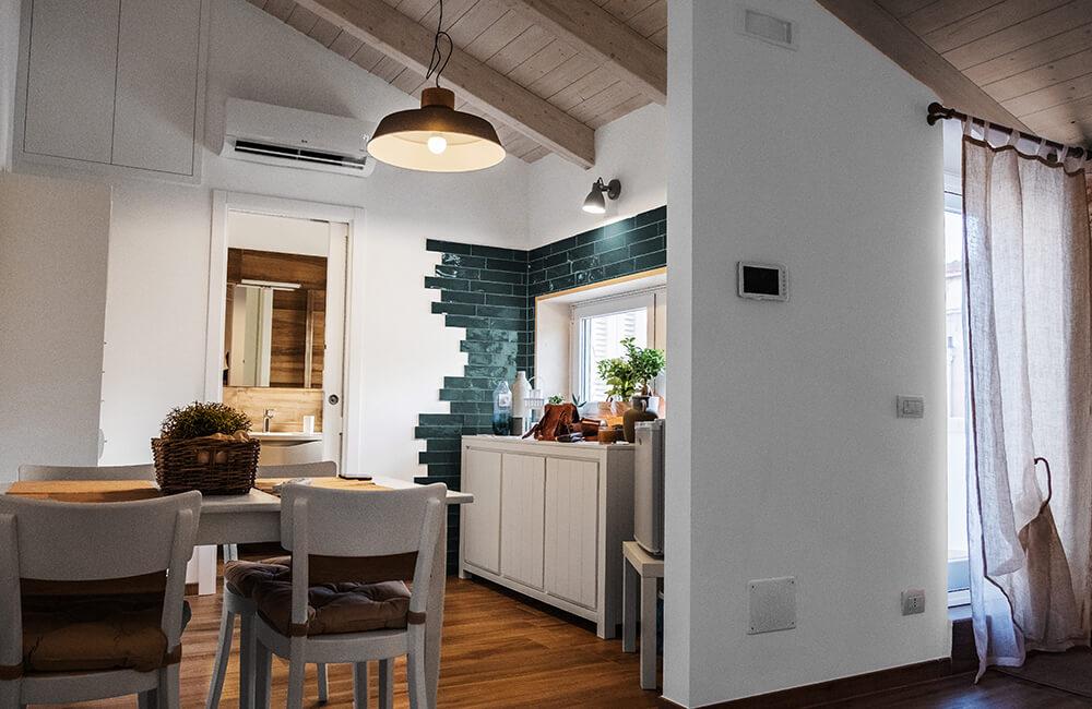 Il recupero di questa abitazione si è contraddistinto per l'attenzione riposta nella scelta dei materiali e dei colori, prestando attenzione ai dettagli e conservando la sua identità architettonica.